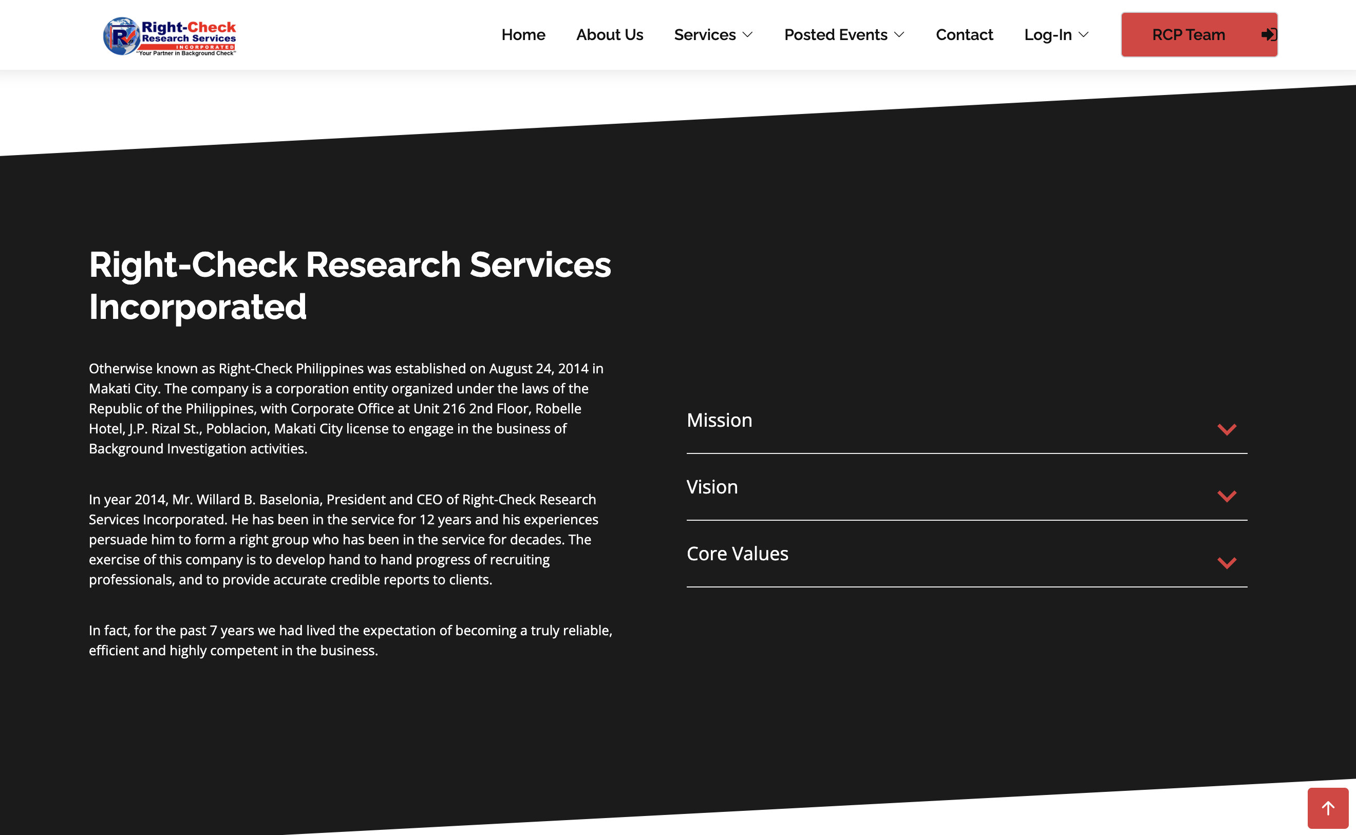 RightCheck Research Services Inc. one of our client that have Real Time Centralized platform that they used to there client point to point online reporting technology that creates, and generate final reports for client endorsements. visit: https://rightcheckphilippines.com/