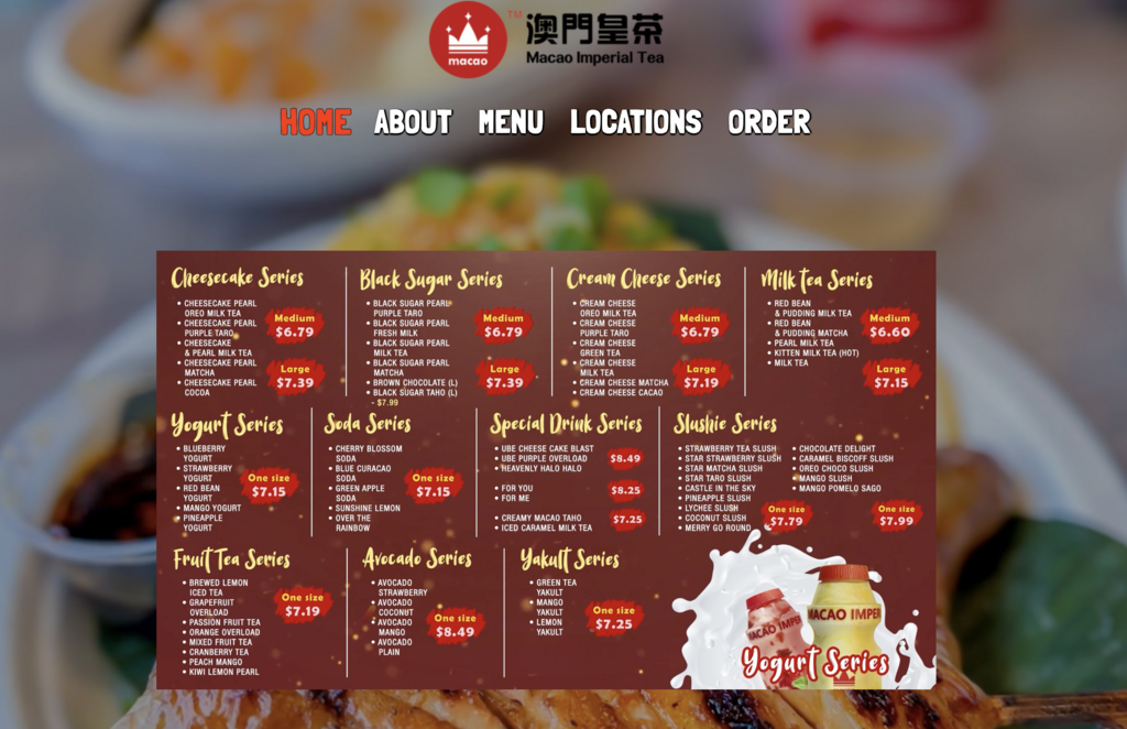 Macao Imperial Tea Parsons Place Canada Provides fastest way of ordering system via web application ordering system with online menu board and offers Good food and cozy place to unwind.